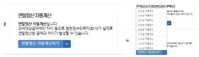 모의계산에 들어가면 아래쪽에 '연말정산 자동계산' 메뉴가 있습니다 '연말정산 자동계산'을 클릭하고 연도별 자동계산 목록에서 2023년 자동계산을 선택하시면 연말정산 모의계산에 필요한 고객님의 정보를 입력하시면 연말정산 모의계산이 완료됩니다.