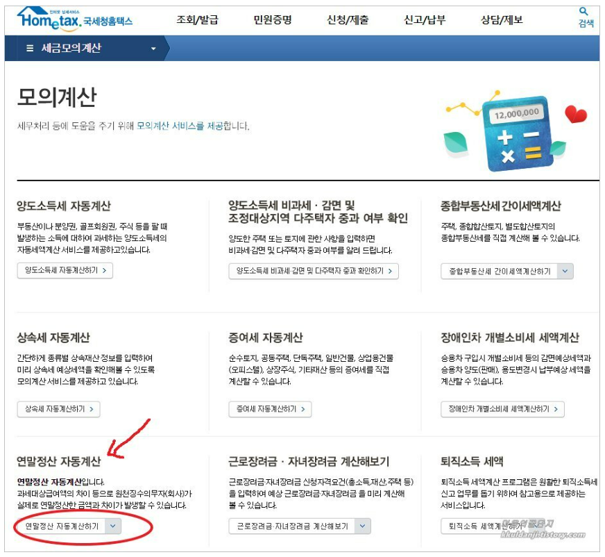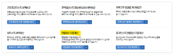 연말정산 간소화 자료를 조회하신 수 기초자료 조회 및 출력 하신 후, '세무 업무별 서비스'에서 '모의계산' 메뉴를 찾으시면 연말정산 모의계산을 할 수 있습니다.