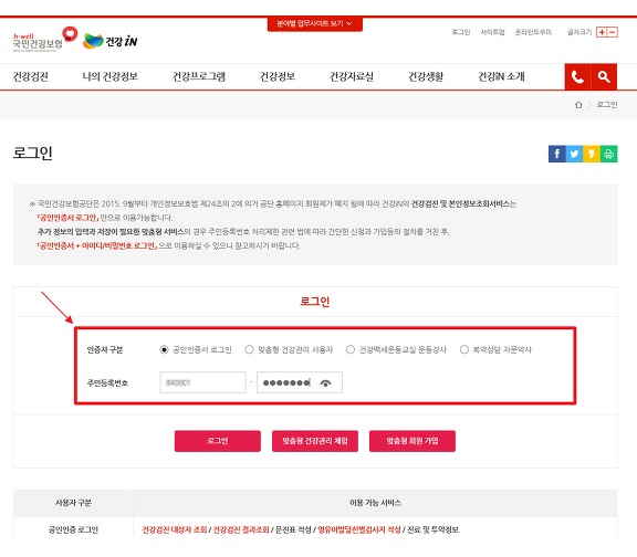 로그인 < 회원서비스 < 기타 | 국민건강보험