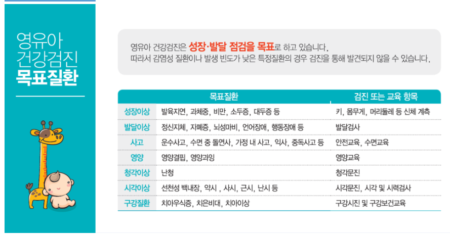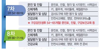 - 생후 66~71개월 검진: 유아기의 마지막 검진으로, 아이의 학교 적응력, 인지 및 언어 발달, 사회적 상호작용 능력 등을 평가합니다. 또한, 신체적 성장과 전반적인 건강 상태를 점검합니다.