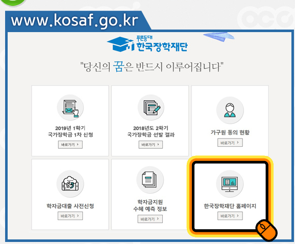 - 학생 또는 학부모는 한국장학재단의 홈페이지에 접속합니다.