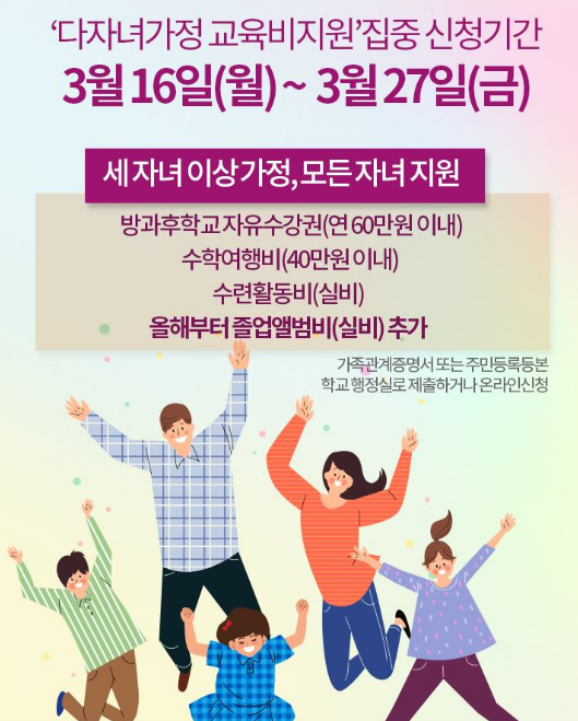 오늘은 다자녀 가정을 위한 특별한 소식을 가지고 왔습니다. 바로 2024년부터 시행되는 다자녀 교육비 혜택에 대한 이야기인데요. 자녀를 양육하는 부모님들께서는 더자녀 교육비 부담이 크실 텐데, 이번 다자녀 교육비 혜택 및 지원 신청 방법이 여러분의 경제적 부담을 조금이나마 덜어드릴 수 있기를 바랍니다.