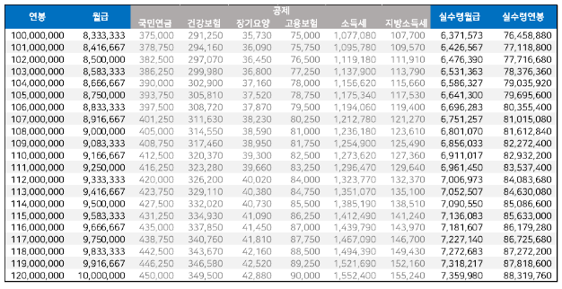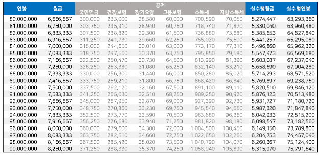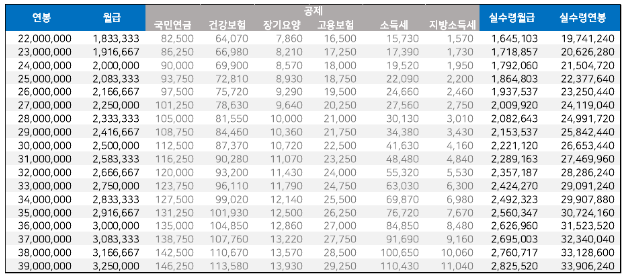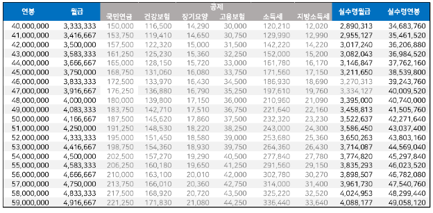 연봉 실수령액표 활용하기